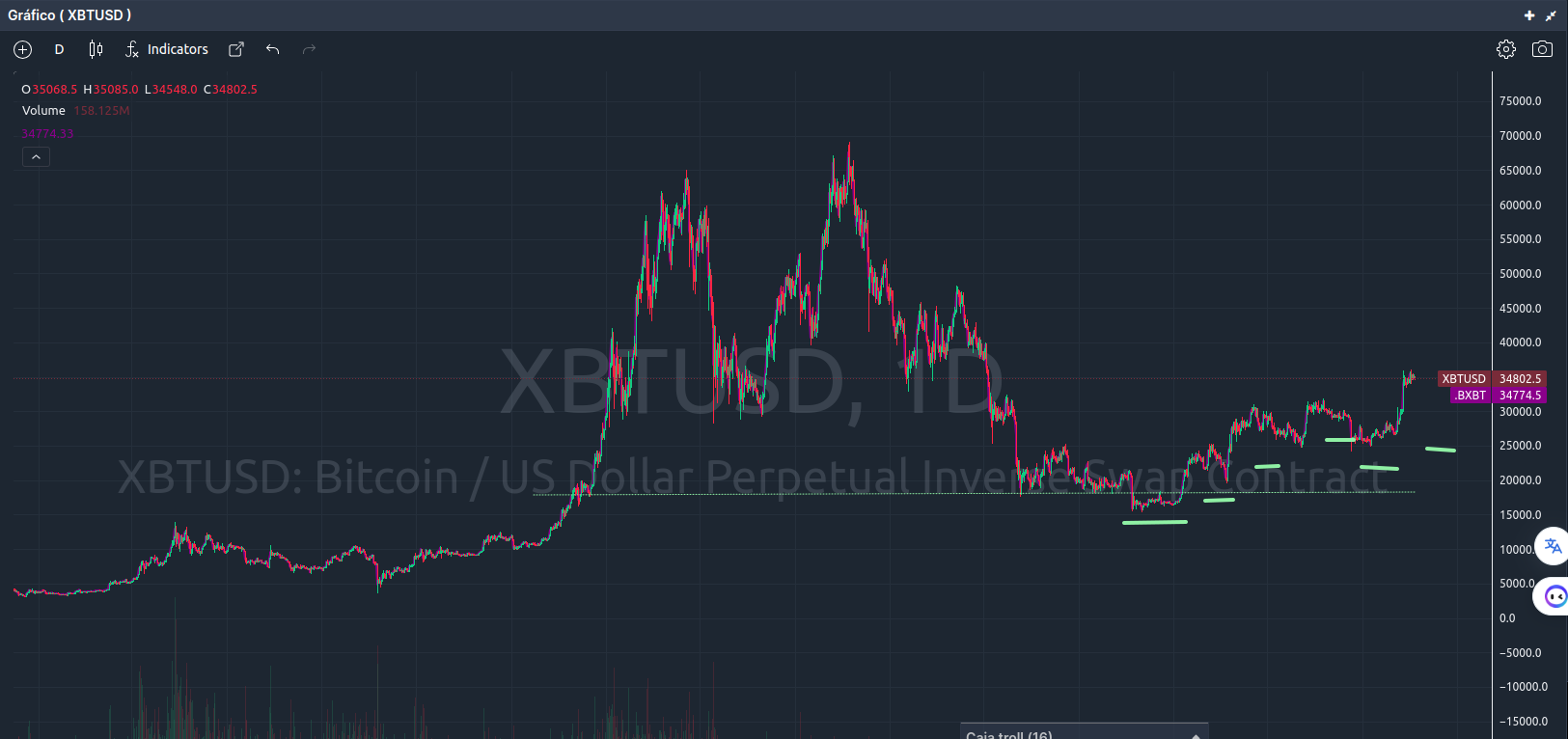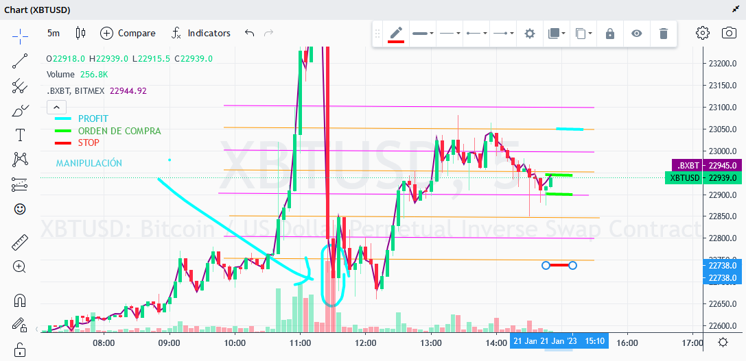 Cuando empiezan a darse cambios contínuos en una misma distancia de precio (es donde el mayorista tiene millones de órdenes pequeñas de limit y está absorbiendo el poder de intercambio), es donde es probable que rompa hacia arriba o hacia abajo, entonces sabiendo este patrón, podemos poner órdenes limitadas de venta por arriba y compra por abajo,...
